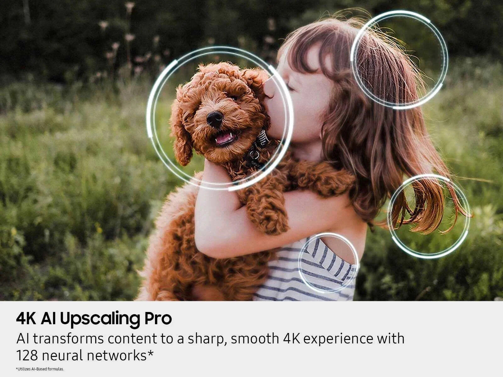 Powered by 128 neural networks, Samsung's most powerful 4K processor leverages AI to deliver a mind-blowing 4K TV experience. No matter what you enjoy watching, movies, shows, and sports all get upscaled to 4K, even if the source content isn't high resolution, thanks to 4K AI Upscaling technology. Plus, get sound optimized to the content you're watching for a truly immersive viewing experience.