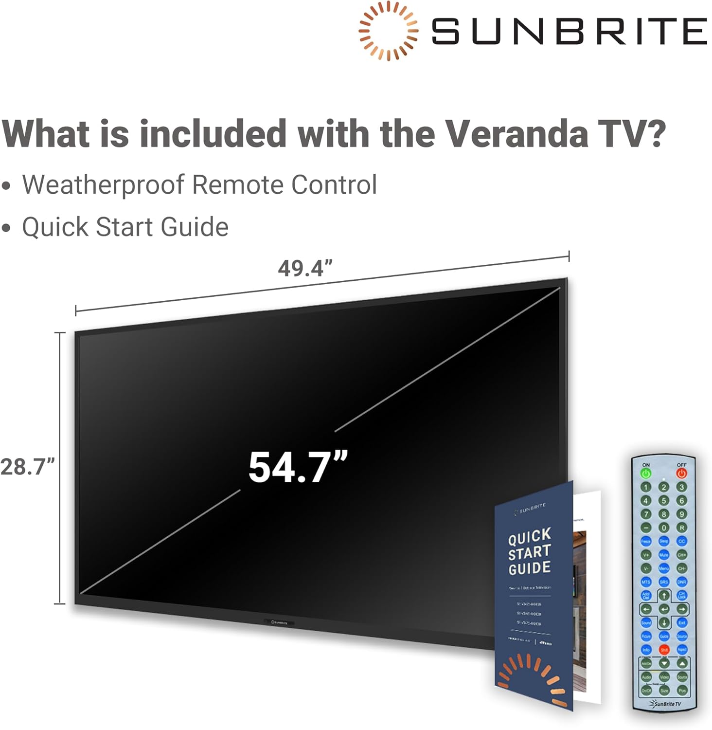 The SunBriteTV Veranda Series 55" Class HDR 4K UHD Outdoor LED TV is designed for enjoying high-quality entertainment in shaded outdoor areas like patios, covered decks, and screened-in porches. It supports HDMI 2.0 and HDCP 2.2, ensuring compatibility with 4K UHD and HDR content. With four HDMI inputs, including an ARC-compatible port, and a USB input, users can easily connect streaming devices and other media sources. A weatherproof IR remote control is included for convenience, but a tabletop stand or wall mount must be purchased separately.